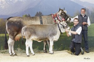 Bundessiegerin LARA (Dabamo AT x Nalus AT) geb: 06.12.2011, 2. Abk. mit Kuhkalb *Käfer von Familie Jenewein, Mieders, TGV. Foto: Stephan Hauser